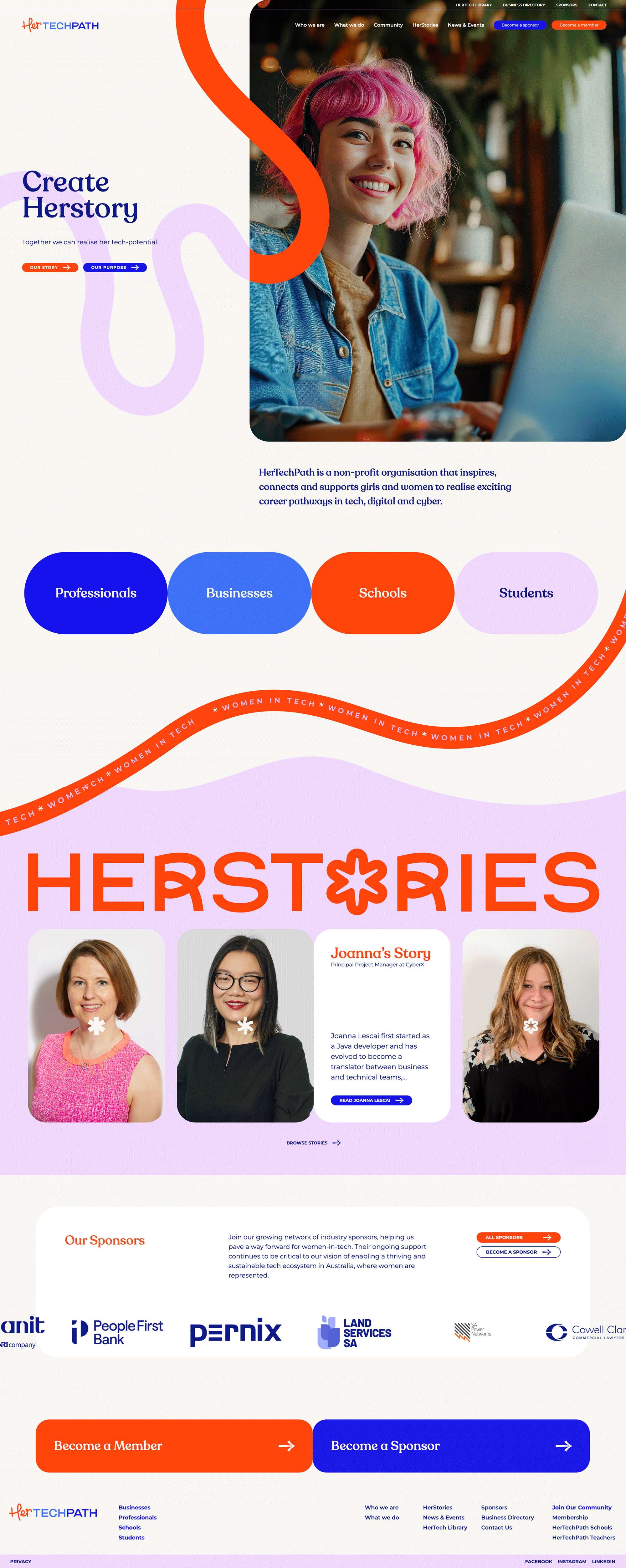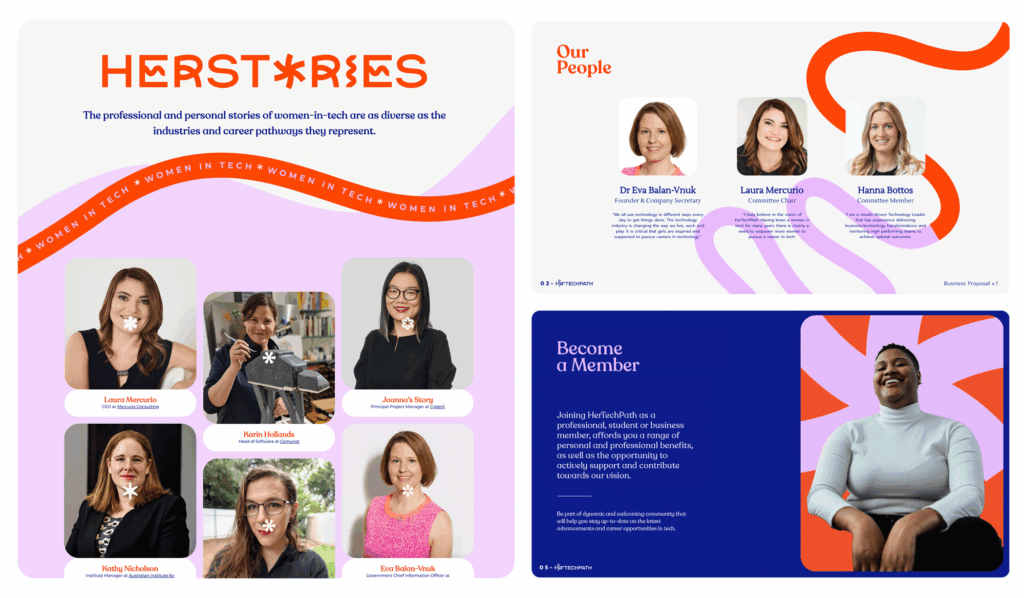 HerTechPath Visual communication collaboration for an Australian non-profit organisation that inspires and supports women and girls to pursue careers in technology.2024 / Project created while working as Art Director at Nucleus Agency.